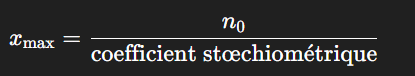 - Réinjecter xmax dans le tableau pour trouver les quantités à l’état final.