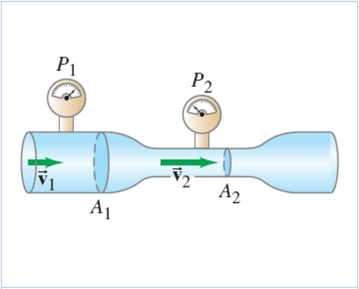 Quand un fluide passe par un tube rétréci, sa vitesse augmente et sa pression diminue.