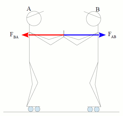 Autrement dit, si un corps A exerce une force sur un corps B, alors B exerce sur A une force de même intensité, mais dans la direction opposée.