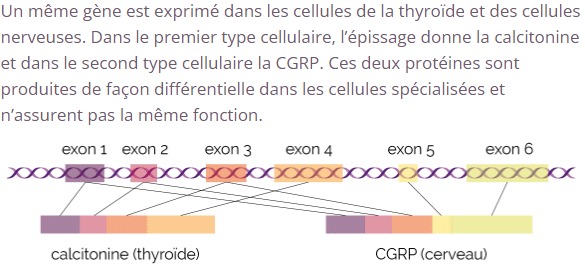 - Exemple : un même gène donne la calcitonine dans la thyroïde, puis la CGRP dans certains neurones.