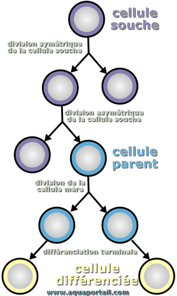 Différenciation : C’est la transformation progressive d’une cellule indifférenciée (ex : cellule souche de l’embryon) en une cellule spécialisée (neurone, muscle, hépatocyte…).